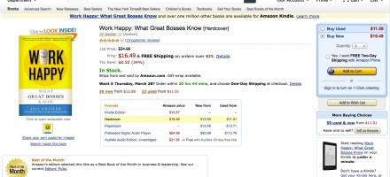 When I did the author's ritual of checking "WORK HAPPY: WHAT GREAT BOSSES KNOW" on Amazon today, I noticed a little badge on the page under the image of the book cover. Turns out that badge symbolized something important.