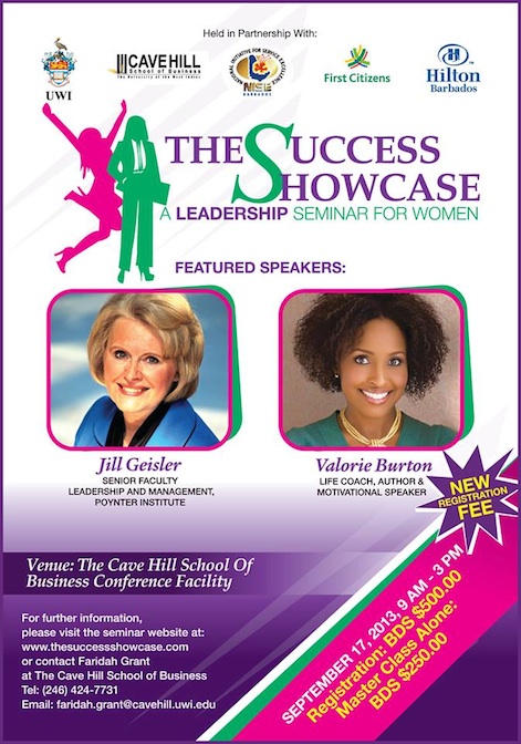 I'm looking forward to September 17, when I visit Barbados. The Cave Hill School of Business at the University of the West Indies is holding this leadership event for women, aptly titled: SUCCESS!