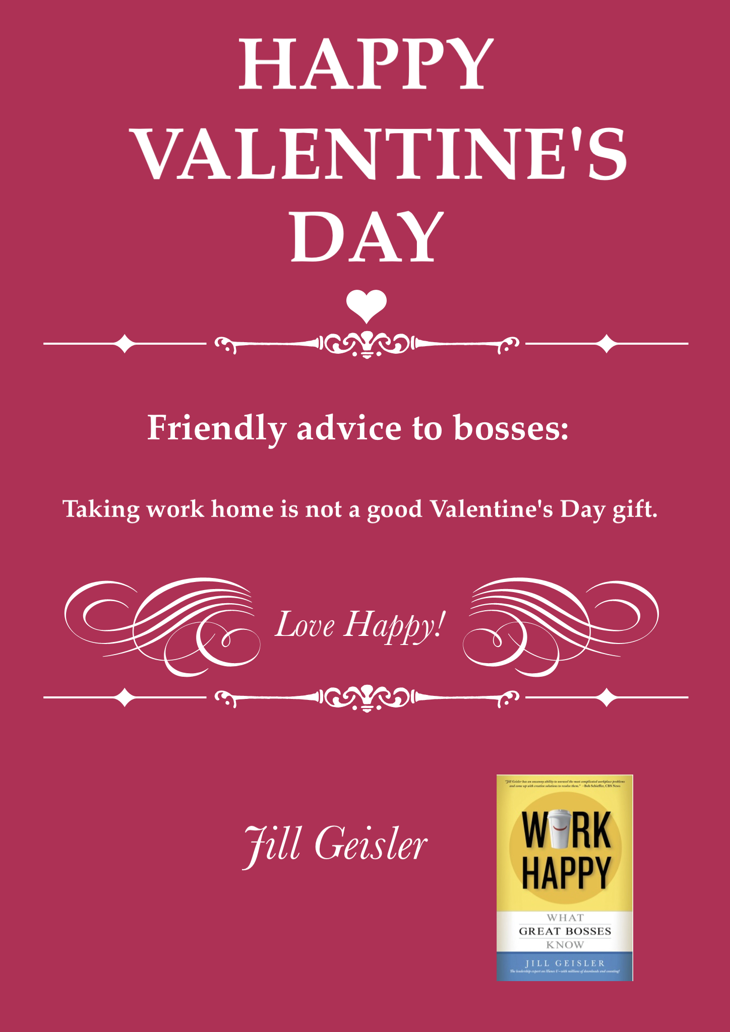 Who's welcome at the Boot Camp? Managers from all professions: Business, government, education, non-profits; If you are responsible for the work of other good folks, you're a good fit for this class. Here's a link to info and applications. And there's a bonus: Everyone who takes part in the class gets a copy of WORK HAPPY: WHAT GREAT BOSSES KNOW.